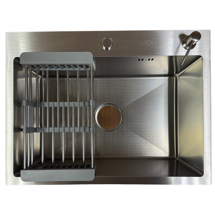 Кухонна мийка Vior — сучасне та функціональне рішення для кухні, де важливі зручність, продумана комплектація та виразний вигляд робочої зони. Квадратна форма 60×45 см робить мийку універсальною та комфортною для щоденного користування.