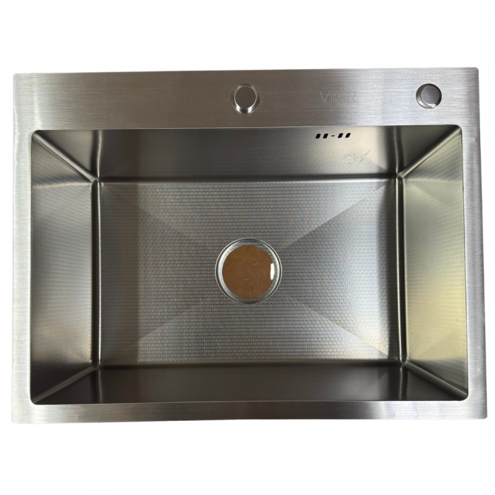 Кухонна мийка VIOR HandMade 60x45 Сатин Декор (Товщина 3.0/1,0 мм + корзина, дозатор та сифон в комплекті)